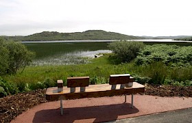 A new 1.6 km footpath has been opened from Fionnphort to Creich around part of picturesque Loch Pottie, allowing locals and visitors to walk safely and with a lot more enjoyment. At the Bunkrooms we are very fortunate to look out on Loch Pottie, but until the path was open it was difficult to get near the edge of the loch which can be wild and boggy. With as little disturbance as possible to the natural habitat around the loch, the path has opened up lovely views and vistas, even providing seating to admire the scenery and watch out for wildlife. The path project was a community initiative, several years in the making, and much credit is due to the path committee for finding a way forward to fund the project agains the odds. Bunkhouse guests can now access the path from the bottom of the drive and walk or cycle off-road to Fionnphort with the chance of seeing lots of bird and plant species en route as well as the local highland cow herd and sheep. The two cows having a picnic on the side of the loch are part of the magnificent local Scarecrow Trail, organised as part of the local Mull and Iona Gala.